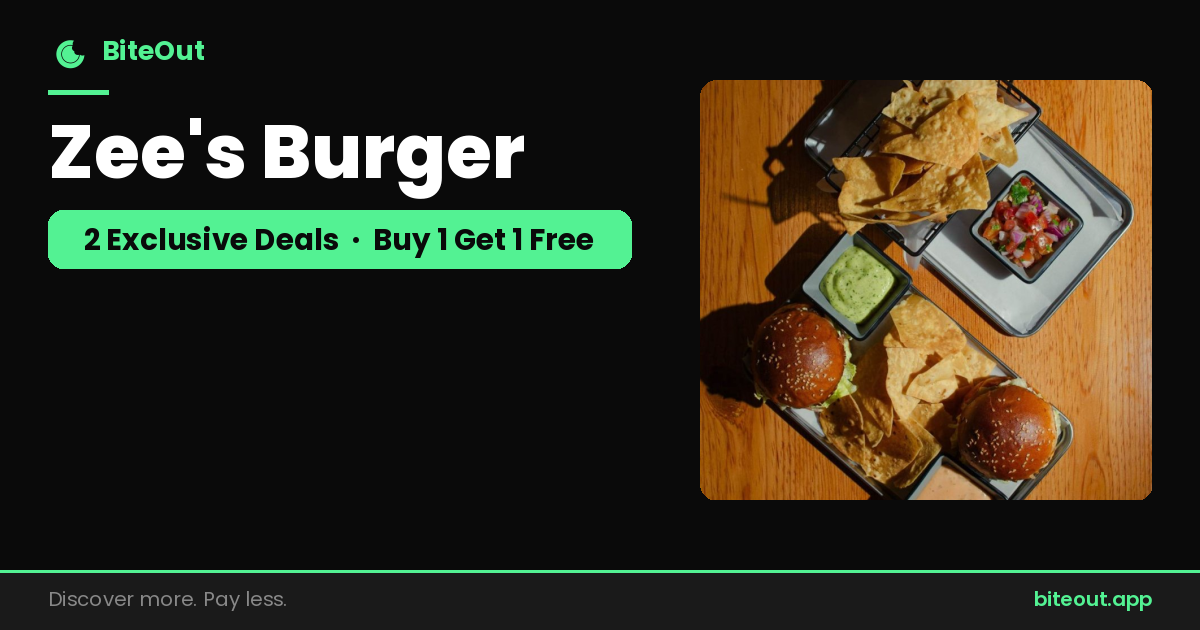 Buy any two Burgers and get the cheaper or equally priced Burgers for free.